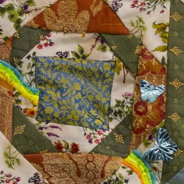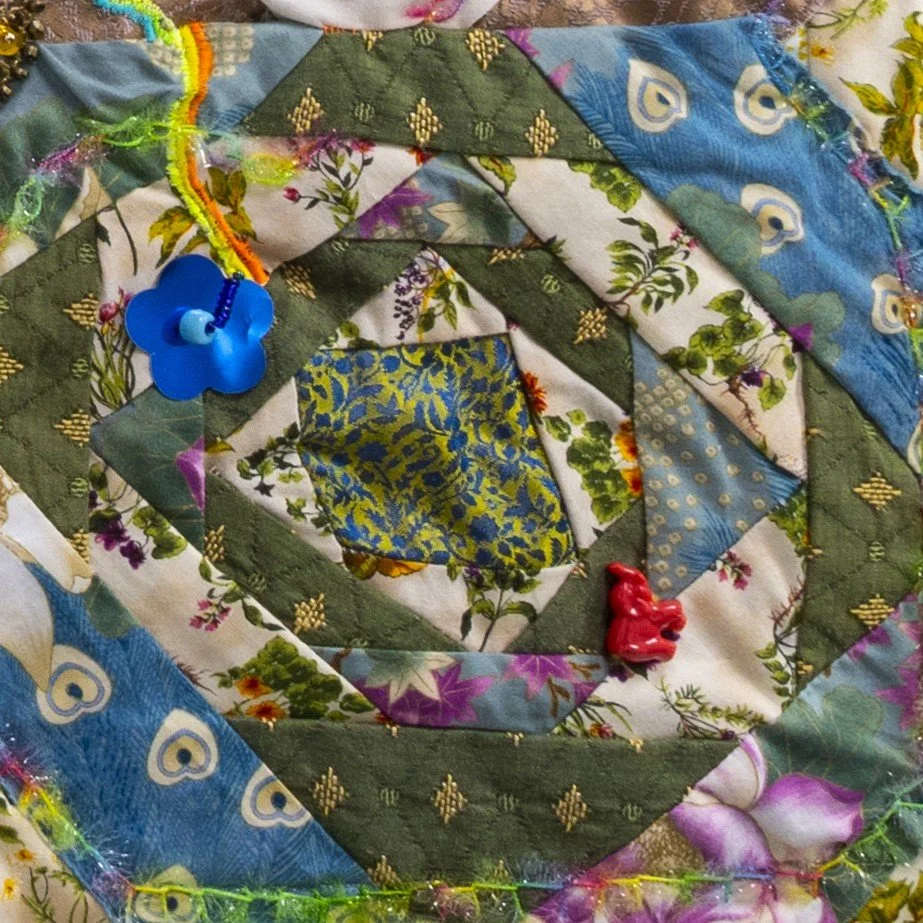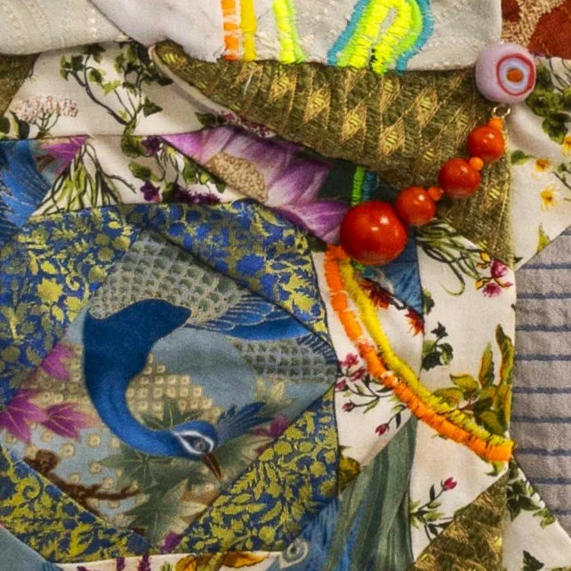 Fabric, yarn, sequins, beads (plastic, metal, wood, glass).